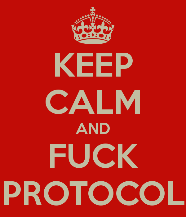 In the health industry, there are protocols on everything, right down from triaging an injury to documentation on a case. The NFL recently instituted ‘Concussion Protocols’ to mitigate serious injury in players. Society has protocols on everything, from public nudity to waste recycling to which side of the road one must drive.